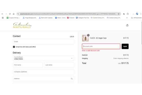 To get Akasha Naturals coupon codes and free shipping, you can check their official website, subscribe to their newsletter and, or follow them on social media platforms. you may find Discount codes on affiliated websites and during promotional events On the Couponsmining.